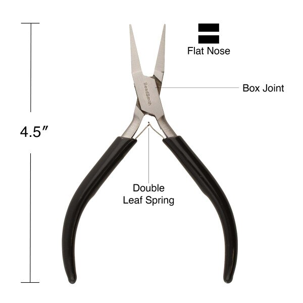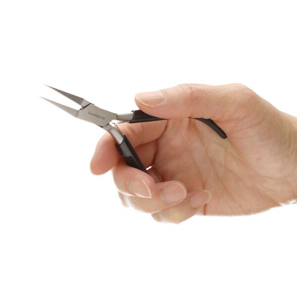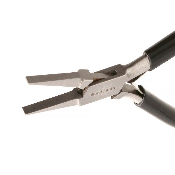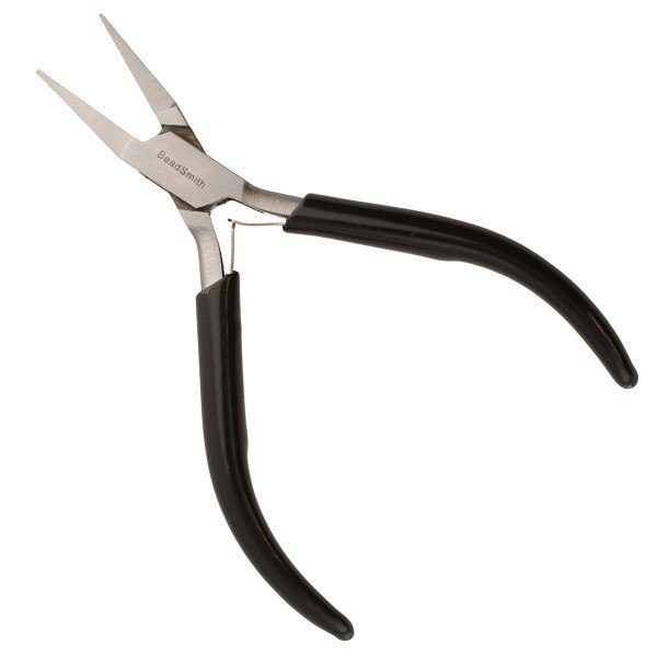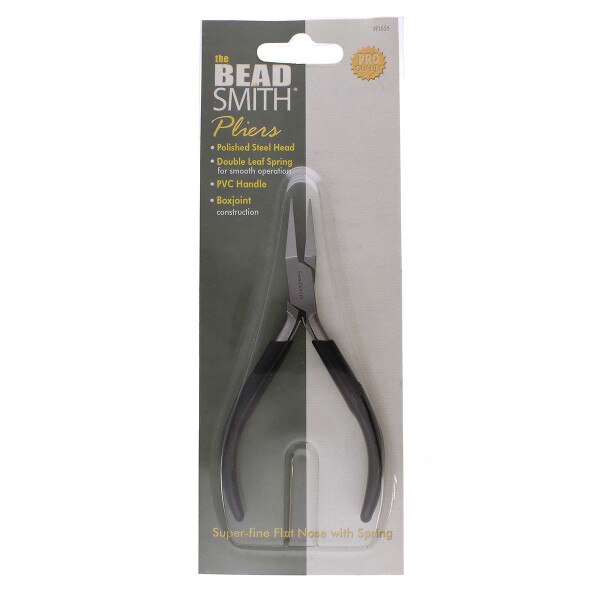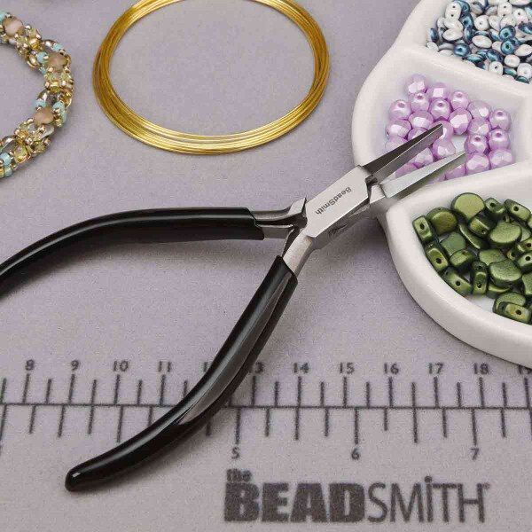 This plier is from the Slim-Line series brought to you by The Beadsmith. It is 4.5 inches long (115mm) and has a black PVC handle, with a very comfortable grip. The box-joint construction is reliable and great for smooth operation, while the double-leaf spring helps reduce hand fatigue. The break strength is Rockwell Hardness 42 – 45. These flat nose pliers are designed for making sharp bends and right angles in wire. Flat nose pliers can also grip flat objects and work well for straightening bent wire. You can also use them to easily open jump rings and chain links. The surface on the inside of the jaws is completely smooth, not serrated. This is extremely important, to avoid marring and scratching your wire as you work with it. These are great for jewelry making, as well as other arts and crafts projects. Whether you are a beginner or making a living with your jewelry designs, we know you will find this tool absolutely essential.