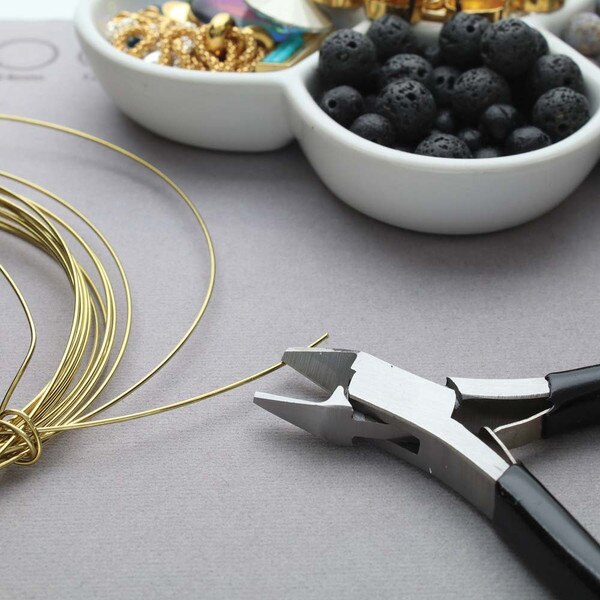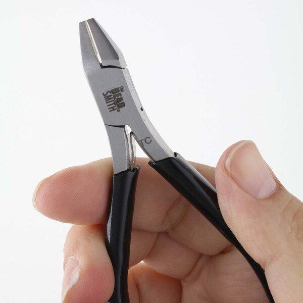 This plier is from the Slim-Line series brought to you by The Beadsmith. The Tungsten Carbide tip is extra strong and harder than most plier and tool tips. It is 4.5 inches long (115mm) and has a black PVC handle, with a very comfortable grip. It is made of a box joint construction, with tapered tips, smooth jaws, and slightly rounded edges allowing you to easily trim and cut off any excess wire. The double-leaf spring helps reduce hand fatigue. The flat blades mean you can cut right up to the edge of your work and in hard to reach places minimizing filing and finishing needed. The tips are very short, which is wonderful for close up precision applications. The break strength for this tool is Rockwell Hardness 42 – 45. These cutters are meant for cutting thin wire or flexible jewelry string such as Flex-Rite. These are great for jewelry making, as well as other arts and crafts projects. Whether you are a beginner or making a living with your jewelry designs, we know you will find this tool absolutely essential.