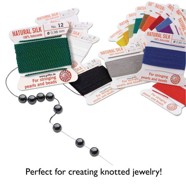 When you want to create delicate and luxurious necklaces or bracelets, Griffin silk cord is perfect for knotting beads, pearls, or gemstones. The thread is plied from 100% pure silk and is made from twisted 3-ply cords. The material is luxurious, soft, and supple. However, the fine thread is extremely durable and stretch-resistant, making it perfect for knotting pearls, gemstones, and beads in your craft and beading projects. This silk cord is pre-threaded on a flexible stainless-steel needle, so you are ready to start any project immediately. This passes through most beads, pearls, and adornments for your crafting projects. This cord is easy to tie as well, and the knots remain virtually invisible. With this string, you can create durable pieces of high-quality jewelry. With this silk cord, your homemade jewelry and crafts will retain a professional look for years to come. String and knot the thread to craft unique jewelry creations or to repair existing pieces. Griffin silk cord is a great option to re-string or repair your existing jewelry. Unlock your creativity and manipulate this fine thread to make jewelry pieces for your own collection or to add to someone else's jewelry accessories. This versatile thread is great for beginners and advanced jewelry makers alike. Show someone how much you care by making a personalized statement pearl necklace or bracelet. Handmade beaded or pearl jewelry pieces make great gifts for friends or loved ones for Christmas, graduations, birthdays, weddings, or other special occasions. Add this jewelry string to your crafting supplies today and unlock your artistic talents.