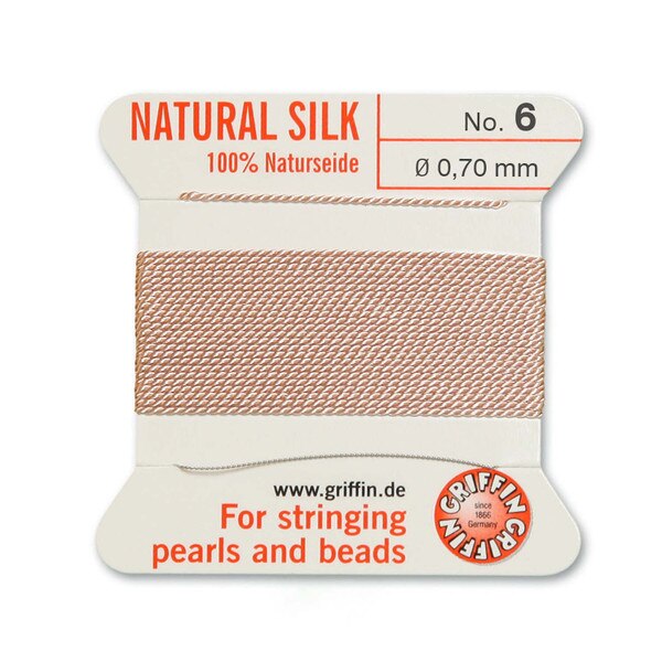 When you want to create delicate and luxurious necklaces or bracelets, Griffin silk cord is perfect for knotting beads, pearls, or gemstones. The thread is plied from 100% pure silk and is made from twisted 3-ply cords. The material is luxurious, soft, and supple. However, the fine thread is extremely durable and stretch-resistant, making it perfect for knotting pearls, gemstones, and beads in your craft and beading projects. This silk cord is pre-threaded on a flexible stainless-steel needle, so you are ready to start any project immediately. This passes through most beads, pearls, and adornments for your crafting projects. This cord is easy to tie as well, and the knots remain virtually invisible. With this string, you can create durable pieces of high-quality jewelry. With this silk cord, your homemade jewelry and crafts will retain a professional look for years to come. String and knot the thread to craft unique jewelry creations or to repair existing pieces. Griffin silk cord is a great option to re-string or repair your existing jewelry. Unlock your creativity and manipulate this fine thread to make jewelry pieces for your own collection or to add to someone else's jewelry accessories. This versatile thread is great for beginners and advanced jewelry makers alike. Show someone how much you care by making a personalized statement pearl necklace or bracelet. Handmade beaded or pearl jewelry pieces make great gifts for friends or loved ones for Christmas, graduations, birthdays, weddings, or other special occasions. Add this jewelry string to your crafting supplies today and unlock your artistic talents.