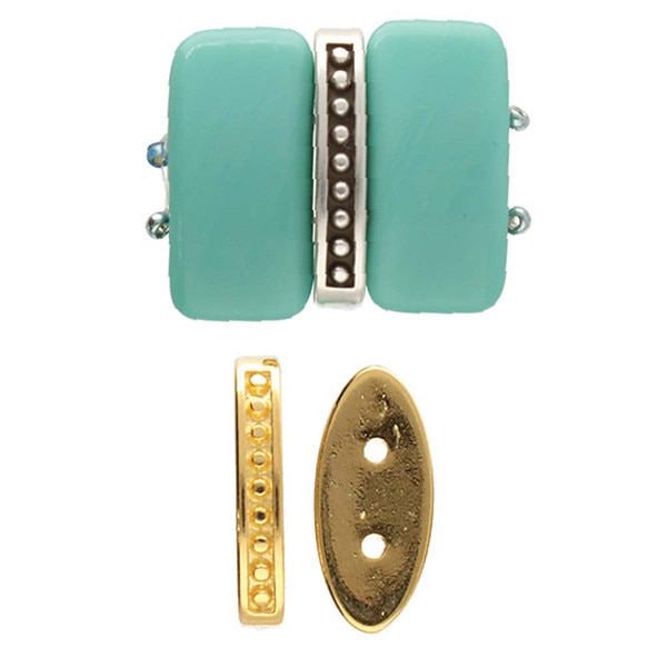 Cymbal Metal Fashion Elements is a unique, imaginative, and groundbreaking metal component line that has been designed to fit and integrate with the most popular beadworking beads in the market including Czech GemDuo, SuperDuo, Silky Bead, and Honeycomb Bead, Miyuki Tilas, 11/0 Delica & Round, and 8/0 Round seed beads as well as shaped beads such as Paisley Duo, Ginko, Kite Bead, and Chevron Duo. Cymbal Metal Fashion Elements have different functions. Bead Substitutes replace glass beads within your beadwork for added metallic shine and texture. Side Beads add metallic definition to the perimeters of jewelry for a refined level of design. Bead Endings shaped and spaced to the specs of a specific bead to serve as clasps or endings to attach clasps. Connectors can serve as links and extensions that add metallic definition and create a mixed media effect. Earrings are ready-to-bead post components. They are perfectly fashioned for your favorite shaped beads. Posts are made from hypoallergenic titanium. Bails are designed to integrate with a piece of beadwork and accommodate various single or multi-strand chain, cords, or kumihimo rope. Pendant Settings are customizable bezel elements that are designed for gluing in shaped beads with adhesive. Some have two rings so you can add a charm or use them as links/connectors.