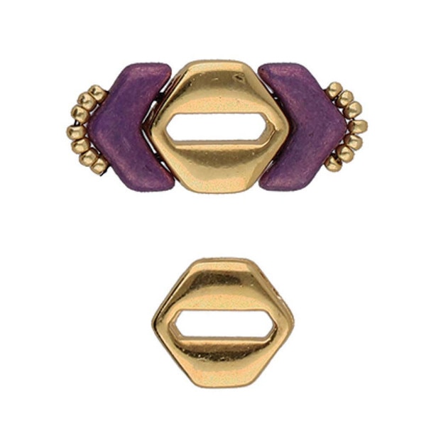 Cymbal Metal Fashion Elements is a unique, imaginative, and groundbreaking metal component line that has been designed to fit and integrate with the most popular beadworking beads in the market including Czech GemDuo, SuperDuo, Silky Bead, and Honeycomb Bead, Miyuki Tilas, 11/0 Delica & Round, and 8/0 Round seed beads as well as shaped beads such as Paisley Duo, Ginko, Kite Bead, and Chevron Duo. Cymbal Metal Fashion Elements have different functions. Bead Substitutes replace glass beads within your beadwork for added metallic shine and texture. Side Beads add metallic definition to the perimeters of jewelry for a refined level of design. Bead Endings shaped and spaced to the specs of a specific bead to serve as clasps or endings to attach clasps. Connectors can serve as links and extensions that add metallic definition and create a mixed media effect. Earrings are ready-to-bead post components. They are perfectly fashioned for your favorite shaped beads. Posts are made from hypoallergenic titanium. Bails are designed to integrate with a piece of beadwork and accommodate various single or multi-strand chain, cords, or kumihimo rope. Pendant Settings are customizable bezel elements that are designed for gluing in shaped beads with adhesive. Some have two rings so you can add a charm or use them as links/connectors.