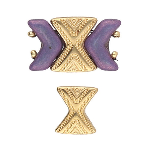 Cymbal Metal Fashion Elements is a unique, imaginative, and groundbreaking metal component line that has been designed to fit and integrate with the most popular beadworking beads in the market including Czech GemDuo, SuperDuo, Silky Bead, and Honeycomb Bead, Miyuki Tilas, 11/0 Delica & Round, and 8/0 Round seed beads as well as shaped beads such as Paisley Duo, Ginko, Kite Bead, and Chevron Duo. Cymbal Metal Fashion Elements have different functions. Bead Substitutes replace glass beads within your beadwork for added metallic shine and texture. Side Beads add metallic definition to the perimeters of jewelry for a refined level of design. Bead Endings shaped and spaced to the specs of a specific bead to serve as clasps or endings to attach clasps. Connectors can serve as links and extensions that add metallic definition and create a mixed media effect. Earrings are ready-to-bead post components. They are perfectly fashioned for your favorite shaped beads. Posts are made from hypoallergenic titanium. Bails are designed to integrate with a piece of beadwork and accommodate various single or multi-strand chain, cords, or kumihimo rope. Pendant Settings are customizable bezel elements that are designed for gluing in shaped beads with adhesive. Some have two rings so you can add a charm or use them as links/connectors.