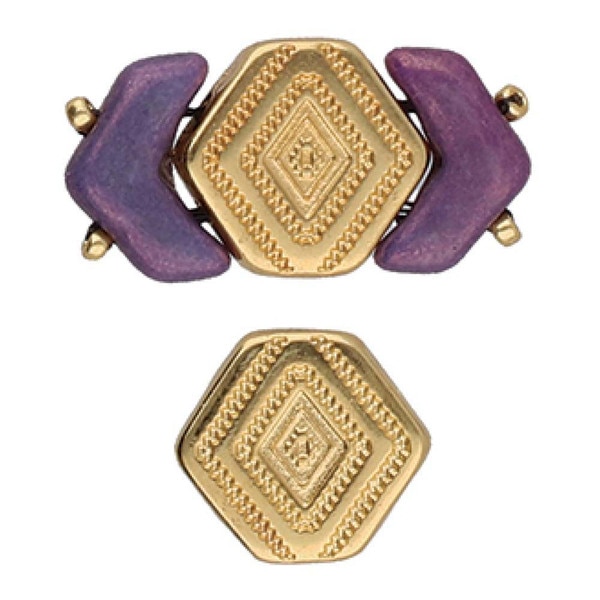 Cymbal Metal Fashion Elements is a unique, imaginative, and groundbreaking metal component line that has been designed to fit and integrate with the most popular beadworking beads in the market including Czech GemDuo, SuperDuo, Silky Bead, and Honeycomb Bead, Miyuki Tilas, 11/0 Delica & Round, and 8/0 Round seed beads as well as shaped beads such as Paisley Duo, Ginko, Kite Bead, and Chevron Duo. Cymbal Metal Fashion Elements have different functions. Bead Substitutes replace glass beads within your beadwork for added metallic shine and texture. Side Beads add metallic definition to the perimeters of jewelry for a refined level of design. Bead Endings shaped and spaced to the specs of a specific bead to serve as clasps or endings to attach clasps. Connectors can serve as links and extensions that add metallic definition and create a mixed media effect. Earrings are ready-to-bead post components. They are perfectly fashioned for your favorite shaped beads. Posts are made from hypoallergenic titanium. Bails are designed to integrate with a piece of beadwork and accommodate various single or multi-strand chain, cords, or kumihimo rope. Pendant Settings are customizable bezel elements that are designed for gluing in shaped beads with adhesive. Some have two rings so you can add a charm or use them as links/connectors.