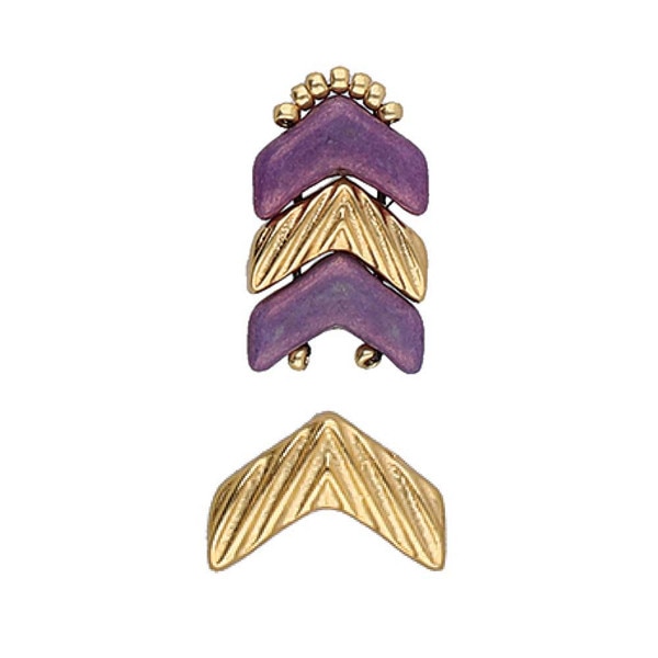 Cymbal Metal Fashion Elements is a unique, imaginative, and groundbreaking metal component line that has been designed to fit and integrate with the most popular beadworking beads in the market including Czech GemDuo, SuperDuo, Silky Bead, and Honeycomb Bead, Miyuki Tilas, 11/0 Delica & Round, and 8/0 Round seed beads as well as shaped beads such as Paisley Duo, Ginko, Kite Bead, and Chevron Duo. Cymbal Metal Fashion Elements have different functions. Bead Substitutes replace glass beads within your beadwork for added metallic shine and texture. Side Beads add metallic definition to the perimeters of jewelry for a refined level of design. Bead Endings shaped and spaced to the specs of a specific bead to serve as clasps or endings to attach clasps. Connectors can serve as links and extensions that add metallic definition and create a mixed media effect. Earrings are ready-to-bead post components. They are perfectly fashioned for your favorite shaped beads. Posts are made from hypoallergenic titanium. Bails are designed to integrate with a piece of beadwork and accommodate various single or multi-strand chain, cords, or kumihimo rope. Pendant Settings are customizable bezel elements that are designed for gluing in shaped beads with adhesive. Some have two rings so you can add a charm or use them as links/connectors.
