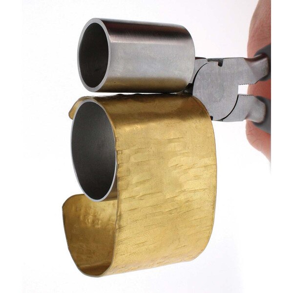 Introducing the Bracelet Making Pliers, now available in two sizes for your crafting convenience! Specifically designed for creating bracelets, these pliers excel at making large curves into flat metal stock without marring engraved or embellished surfaces. Whether you're a seasoned jewelry maker or a hobbyist, these pliers make bracelet crafting quick and easy. With two cylinder size options, PL49 with 1" (25.4mm) and 1-3/8" (34.9mm) cylinders, and PL50 with 1-3/8" (34.9mm) and 1-5/8" (41.3mm) cylinders, you have the flexibility to choose the perfect size for your project. Crafted with lap joint construction, these pliers are durable and reliable for long-term use. Instructions are simple: decide on the desired diameter size for your curve, then feed the metal piece between the two cylinders while forming it around the chosen size. The resulting curve can be easily adjusted on a mandrel for further customization. Elevate your bracelet-making experience with the Bracelet Making Pliers and achieve professional results with ease.
