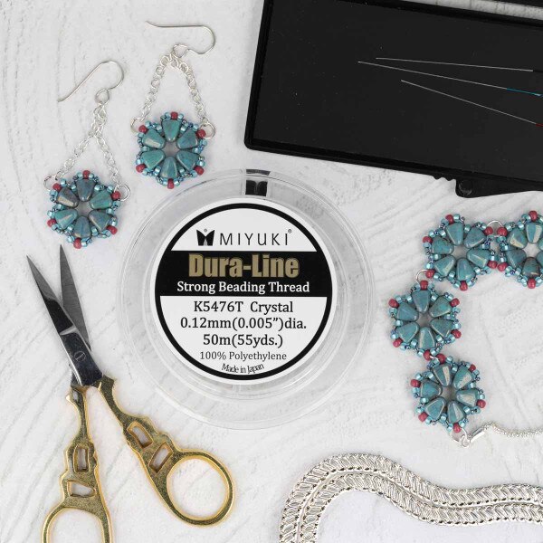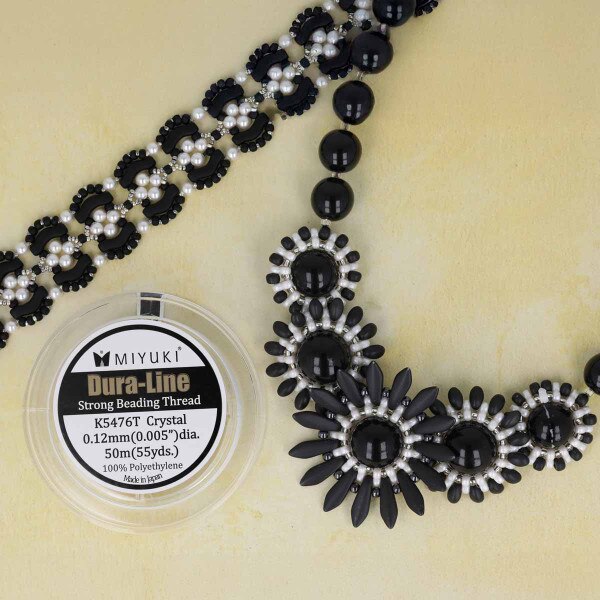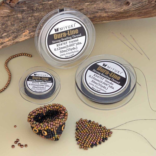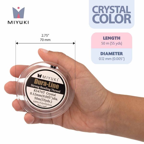 Experience the ultimate in strength and durability with Miyuki Dura-Line Braided Beading Thread, the perfect choice for beadwork and jewelry making enthusiasts. Crafted from gel-spun polyethylene, this thread is one of the strongest fiber cords per diameter ever created, ensuring unparalleled strength and reliability in your projects. Whether you're working on intricate beadwork or stringing multiple passes, Miyuki Dura-Line delivers the flexibility and resilience you need for flawless results. Pre-waxed for your convenience, this thread is easy to work with, allowing you to focus on unleashing your creativity without worrying about tangles or snags. Its small 0.12mm thickness makes it ideal for beads with small holes, ensuring smooth and seamless stringing every time. Comparable to size A or B Nymo thread, Miyuki Dura-Line offers a high-quality alternative with superior strength and durability. Each spool contains 20 meters of thread, providing you with plenty of material to tackle even your most ambitious projects. Available in classic white, this versatile thread is perfect for a wide range of bead stringing applications, from intricate jewelry designs to bold statement pieces. Whether you're a seasoned beader or just starting out, Miyuki Dura-Line Braided Beading Thread is the perfect companion for achieving professional-quality results. Unlock the potential of your beadwork with Miyuki Dura-Line Braided Beading Thread. Order now and elevate your creations to new heights of strength and durability!