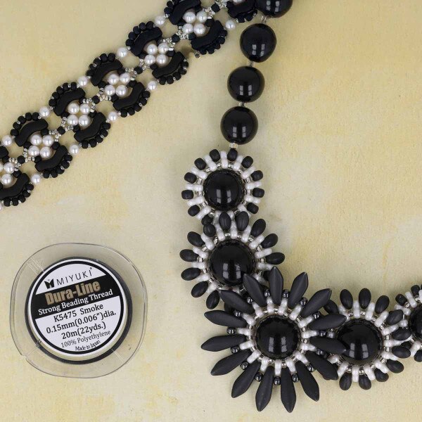 Experience the ultimate in strength and durability with Miyuki Dura-Line Braided Beading Thread, the perfect choice for beadwork and jewelry making enthusiasts. Crafted from gel-spun polyethylene, this thread is one of the strongest fiber cords per diameter ever created, ensuring unparalleled strength and reliability in your projects. Whether you're working on intricate beadwork or stringing multiple passes, Miyuki Dura-Line delivers the flexibility and resilience you need for flawless results. Pre-waxed for your convenience, this thread is easy to work with, allowing you to focus on unleashing your creativity without worrying about tangles or snags. Its small 0.12mm thickness makes it ideal for beads with small holes, ensuring smooth and seamless stringing every time. Comparable to size A or B Nymo thread, Miyuki Dura-Line offers a high-quality alternative with superior strength and durability. Each spool contains 20 meters of thread, providing you with plenty of material to tackle even your most ambitious projects. Available in classic white, this versatile thread is perfect for a wide range of bead stringing applications, from intricate jewelry designs to bold statement pieces. Whether you're a seasoned beader or just starting out, Miyuki Dura-Line Braided Beading Thread is the perfect companion for achieving professional-quality results. Unlock the potential of your beadwork with Miyuki Dura-Line Braided Beading Thread. Order now and elevate your creations to new heights of strength and durability!