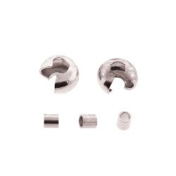 Crimp beads are small, cylindrical beads used in jewelry making to secure beading wire or thread in place. They work by being placed onto the wire or thread and then compressed using crimping pliers, which flatten the bead and pinch it tightly against the wire. This creates a secure hold that prevents beads from sliding or shifting, making crimp beads essential for creating professional-looking, durable jewelry designs. Crimp beads come in various sizes and finishes, allowing for versatility in both function and style. They are often used in combination with crimp covers to create a polished and finished look.
