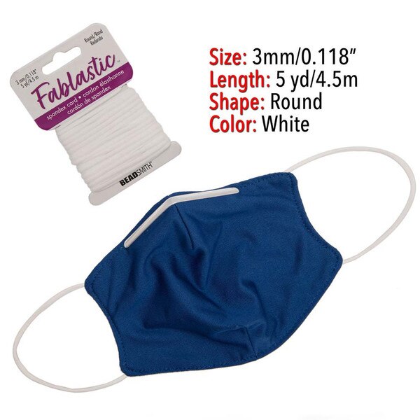 FABLASTIC 3MM DIA WHITE ROUND STRETCH CORD 5 YRD