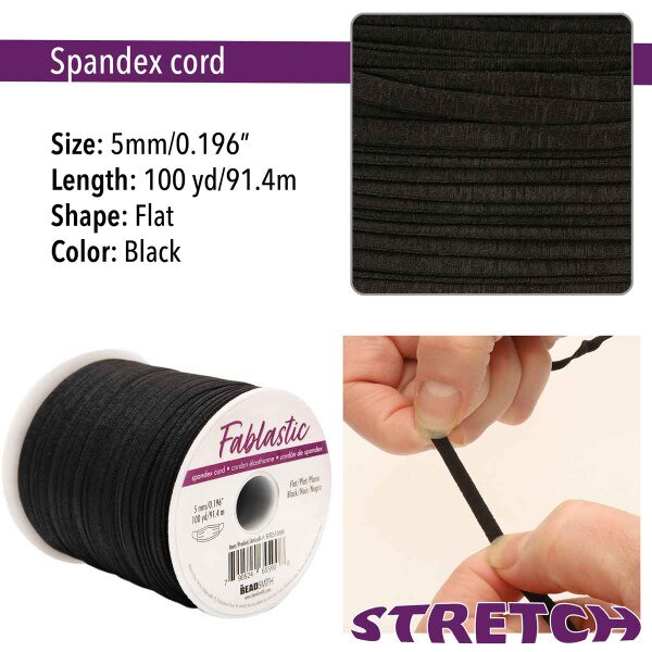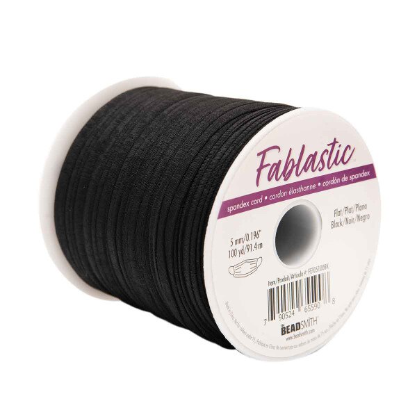 FABLASTIC 5MM DIA BLACK FLAT STRETCH CORD 100 YRD