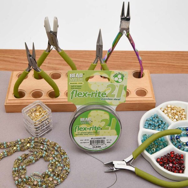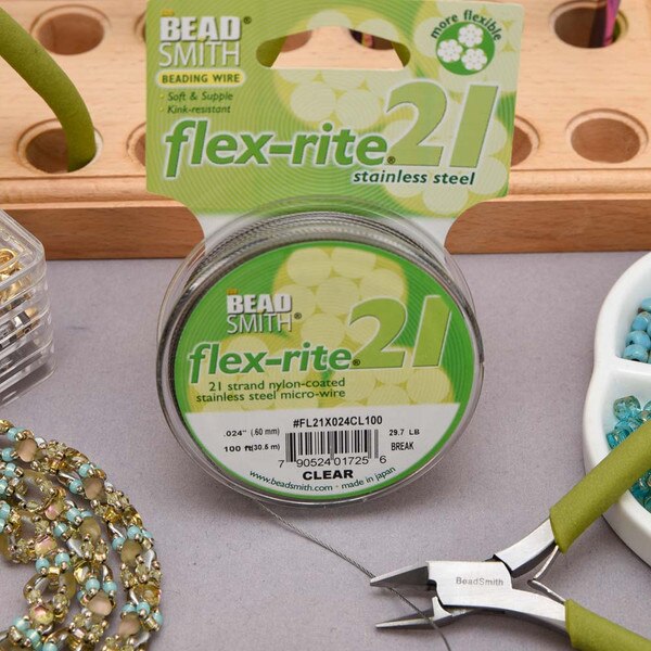 Superior strength and extreme flexibility join together using state-of-the-art micro wire technology to create Flex-rite. This beading wire is made of stainless-steel wires that are coated in nylon, making the texture smooth and soft. In addition, it is kink resistant, abrasion resistant and very supple. Flex-rite is designed to provide an excellent drape, making it a very wearable material. Designers find this ideal for creating bracelets, necklaces, and other jewelry accessories. Because of its functionality, this bendable, micro-fused thread is great for beginners and advance jewelry makers. It’s a very popular choice for both small and heavier beads, for creating larger statement pieces, as well as simple, modern jewelry. Wire projects can be finished with crimp beads, crimp tubes or clamshells for a flawless finish. Flex-rite comes in a selection of metallic and vibrant colors, as well as 4 sizes to accommodate a variety of projects. The 7 strand is a good quality for general purpose use. The 19 and 21 strands provide a better flexibility and softness, while the 49 strand is a professional quality, that offers long lasting superior strength. Crafters and other hobbyists use these to make sun catchers, hanging crystals, minimalist wreaths and windchimes. Bring out your creativity and show off a beautiful esthetic with unique and thoughtfully crafted art.