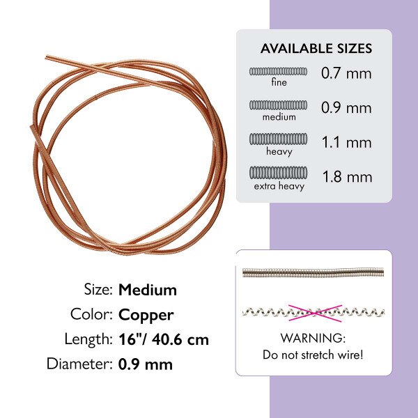 Discover the elegance of French wire, also known as bullion or gimp, a delicate spiral crafted from silver or gold-filled wire. Jewelers employ this ingenious tool to artfully conceal beading wire near crimps and clasps, ensuring a seamless finish. Experience a refined touch with French wire, adding sophistication to your jewelry. Not only does it beautify your pieces, but it also fortifies, and safeguards beadwork ends. This choice is a favorite among hobbyist beaders, particularly in projects involving seed beads and knotted pearls. Unveil the artistry of a coiled tunnel as wire is meticulously spun into a compact coil. There are several size options to choose from – fine, medium, heavy and extra heavy, as well as two lengths – a larger 50-gram package, or smaller use 14- and 16-inch pieces. The wire comes in a variety of colors – gold, new gold, silver, copper, grey, champagne and vintage bronze, each guaranteed to add that elegant finish to your jewelry. Simplicity meets ingenuity with French wire. Secure the crimp and select the appropriate piece of wire. Slide it deftly through the needle, then weave the clasp in tandem with the French wire through the crimp, adroitly concealing the cord. A pair of crimping pliers assists in crafting a neat crease with parallel sides, a technique easily repeated on the opposite end. Elevate your jewelry-making journey with this user-friendly process, expertly enhancing your creations.