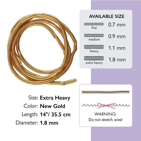 Discover the elegance of French wire, also known as bullion or gimp, a delicate spiral crafted from silver or gold-filled wire. Jewelers employ this ingenious tool to artfully conceal beading wire near crimps and clasps, ensuring a seamless finish. Experience a refined touch with French wire, adding sophistication to your jewelry. Not only does it beautify your pieces, but it also fortifies, and safeguards beadwork ends. This choice is a favorite among hobbyist beaders, particularly in projects involving seed beads and knotted pearls. Unveil the artistry of a coiled tunnel as wire is meticulously spun into a compact coil. There are several size options to choose from – fine, medium, heavy and extra heavy, as well as two lengths – a larger 50-gram package, or smaller use 14- and 16-inch pieces. The wire comes in a variety of colors – gold, new gold, silver, copper, grey, champagne and vintage bronze, each guaranteed to add that elegant finish to your jewelry. Simplicity meets ingenuity with French wire. Secure the crimp and select the appropriate piece of wire. Slide it deftly through the needle, then weave the clasp in tandem with the French wire through the crimp, adroitly concealing the cord. A pair of crimping pliers assists in crafting a neat crease with parallel sides, a technique easily repeated on the opposite end. Elevate your jewelry-making journey with this user-friendly process, expertly enhancing your creations.