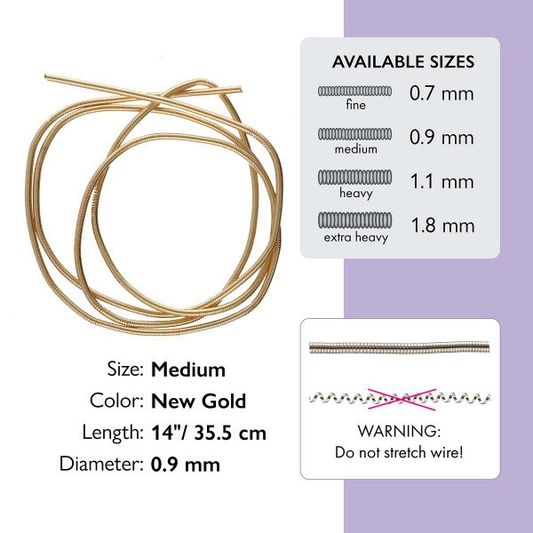 Discover the elegance of French wire, also known as bullion or gimp, a delicate spiral crafted from silver or gold-filled wire. Jewelers employ this ingenious tool to artfully conceal beading wire near crimps and clasps, ensuring a seamless finish. Experience a refined touch with French wire, adding sophistication to your jewelry. Not only does it beautify your pieces, but it also fortifies, and safeguards beadwork ends. This choice is a favorite among hobbyist beaders, particularly in projects involving seed beads and knotted pearls. Unveil the artistry of a coiled tunnel as wire is meticulously spun into a compact coil. There are several size options to choose from – fine, medium, heavy and extra heavy, as well as two lengths – a larger 50-gram package, or smaller use 14- and 16-inch pieces. The wire comes in a variety of colors – gold, new gold, silver, copper, grey, champagne and vintage bronze, each guaranteed to add that elegant finish to your jewelry. Simplicity meets ingenuity with French wire. Secure the crimp and select the appropriate piece of wire. Slide it deftly through the needle, then weave the clasp in tandem with the French wire through the crimp, adroitly concealing the cord. A pair of crimping pliers assists in crafting a neat crease with parallel sides, a technique easily repeated on the opposite end. Elevate your jewelry-making journey with this user-friendly process, expertly enhancing your creations.