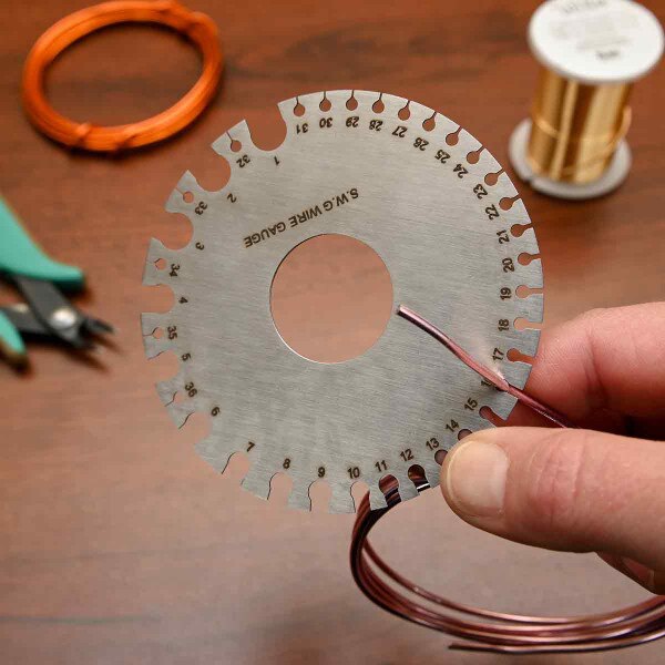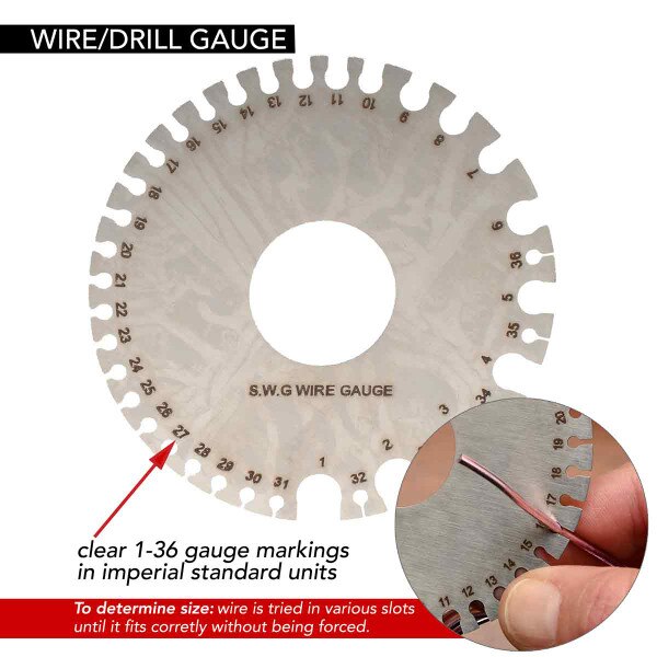 The Beadsmith Wire/Drill Gauge is a circular gauge that is used for measuring the thickness of wires, which is particularly ideal for unknown sizes, as well as unmarked drill bits. Use this tool as an extremely easy way to measure all types of wire. Because this tool is so easy to use it is such a time saver too. Made from high-quality steel, this sizer will not rush or tarnish and is very long lasting. This disk-like tool features laser cut slots and clearly marked measurement indications using Imperial Standard sizes 1-36. The round hole in the center of the gauge makes it easy to keep your hand out of the way while measuring. To determine the size of your wire, simply try the wire in multiple slots until it fits correctly without being forced. Once it is in its correct slot, use the included conversion sheet to figure out the coordinating inches and/or millimeters of your wire. This will give you the diameter, or thickness, of the wire or drill bits. This can also be used for other items that can fit into the slots. This measuring tool is often found in an electrician’s toolbox, as the gauge is essential to find out the sizes of wire and cords when they are troubleshooting and repairing electrical malfunctions. Jewelry designers find these useful when using craft wire to create bracelets, rings, pendants, and cuffs. Metalsmiths use the sizers when forging pieces of art or home décor.