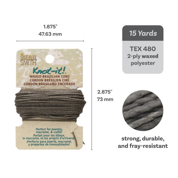 KNOT IT WAXED POLY CORD 15 YARDS/CARD DARK GREY