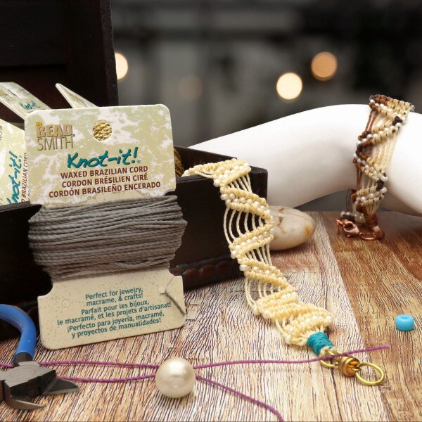 Whether you are stocking your supply room or ordering a set of bead cord for yourself, The Beadsmith’s Knot It cord is up for the task. This 2-ply waxed polyester is perfect for knotting gemstones or beads, kumihimo braiding, jewelry stringing and much more. Knot It cord is perfect for adults and kids alike to create jewelry from friendship bracelets to delicate pendants. It can fit through a variety of bead shapes and sizes, including glass, crystal, wood, and plastic beads. This cord is easy to string through beads and can be easily tied into knots. Plus, it is durable, washable and fray-resistant, making it extremely versatile when crafting. Each cord is 1mm in diameter and comes in a large variety of vibrant colors. Choose from a 144-meter spool, 15-yard single color cards or a mix of 4 coordinating colors on a card, with 15 yards of each color. With this cord, your homemade jewelry and crafts will retain a professional look for years to come. Imported from Brazil, this waxed cord has many uses: micro macramé, leather works, bead stringing, book binding, sewing, show making and more! Unlock your creativity and manipulate this versatile cord to make jewelry pieces for your own collection or to add to someone else's jewelry accessories. Show someone how much you care by making a personalized statement necklace. Handmade beaded jewelry pieces make great gifts for friends or loved ones for birthdays, Christmas, weddings, graduation, or other special occasions. Add this jewelry cord assortment to your crafting or beading supplies today and unlock your artistic talents.