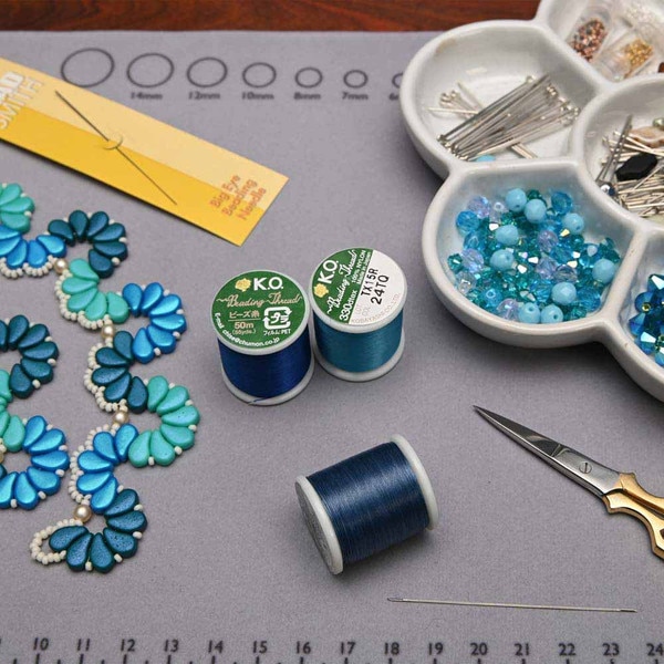 KO Beading Thread is the perfect cord for all your jewelry making projects. Created by Japanese Master Beader Sonoko Nozue, KO thread is of the highest quality. Made in Japan of 100% pre-waxed nylon, 330TEX these spools are 50 meters/55 yards in length. Available in 24 gorgeous colors, there is no limit to the palette you can create. If you can’t make up your mind, there are two different assortment packs, each with a dozen spools. Some of the many benefits to using KO thread: they are pre-waxed, colorfast, abrasion and tangle-resistant, which can be knotted tightly and securely. They work well with commonly used size 10 or 12 beading needles. This thread is an excellent alternative for Nymo and is similar in diameter to a Nymo size B, which measures 0.008 in/0.2032mm diameter. Jewelry designers love this thread for making necklaces, bracelets, cuffs and more. This thread is ideal for delica and seed bead projects. Create gorgeous loom work or practice off-loom bead weaving such as peyote, herringbone, square, right-angle weave or brick stitch. Unlock your creativity and manipulate this versatile cord to make jewelry pieces for your own collection or to add to someone else's jewelry accessories. Show someone how much you care by making a personalized statement necklace. Handmade beaded jewelry pieces make great gifts for friends or loved ones for birthdays, Christmas, weddings, graduation, or other special occasions. Add this thread to your beading supplies and start crafting your own unique jewelry creations.