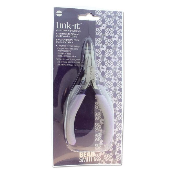 Introducing the Link It Pliers, the perfect tool for chainmaille enthusiasts and jewelry makers alike. Specifically designed for working with chainmaille and jump rings, these pliers feature fine tips and smooth jaws, ensuring precise and secure handling of delicate materials. Measuring 4 3/4 inches in length, with 3/4-inch-long jaws tapering to 1mm, these pliers provide optimal control and maneuverability. With the Link It Pliers, you can effortlessly hold two rings in place with one hand while using the other pair of pliers to open one of the rings. Simply slide the opened ring through four closed rings, then close it by lining up its ends and twisting them together using the pliers. Repeat this process to add more rows until you achieve the desired length of your chainmaille creation. Whether you're a seasoned chainmaille artist or a beginner looking to explore this intricate craft, the Link It Pliers are an essential tool for achieving professional results.