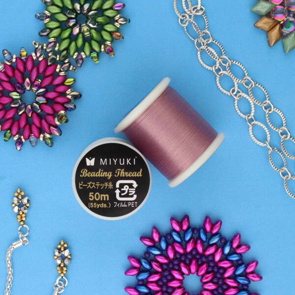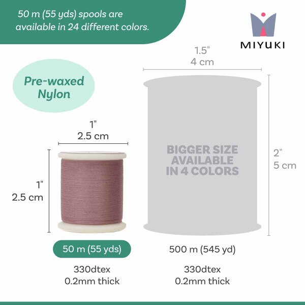 Elevate your beadwork to new heights with Miyuki Bead Thread. Since the 1930s, Miyuki has set the gold standard in glass seed bead manufacturing, ensuring precision and consistency in every project. Crafted in Japan, our pre-waxed nylon thread boasts a thickness of 0.2mm and comes in a generous 50-meter spool, providing ample material for your creative endeavors. Ideal for delica beads, stringing, weaving, and more, this thread adds a touch of elegance to your designs. Unleash your creativity with our vibrant rainbow of thread colors, meticulously curated to inspire your imagination. Choose from basic, bright, and primary hues to infuse personality and flair into your artistic projects. Miyuki Bead Thread offers unparalleled versatility and durability, ensuring your creations stand out with exquisite detail and lasting beauty. Fuel your imagination with endless possibilities. Whether you're a seasoned artisan or a beginner, our thread is perfect for seed bead projects, loom work, and off-loom bead weaving like peyote or brick stitch. Explore intricate techniques and designs with confidence, knowing that Miyuki Bead Thread provides the perfect foundation for your creations.