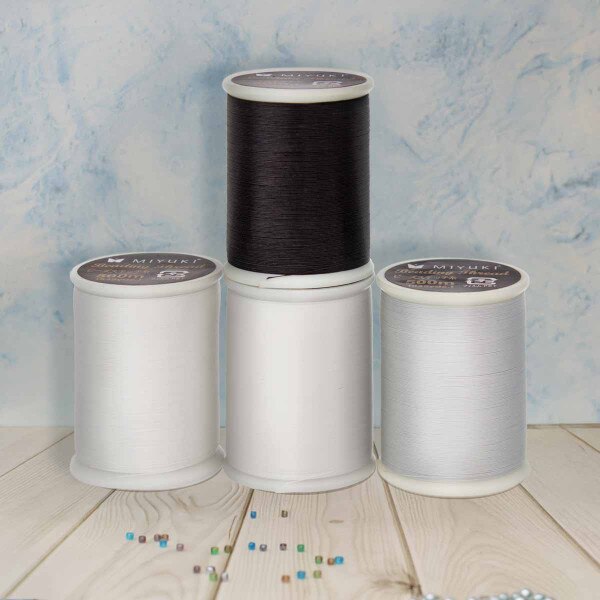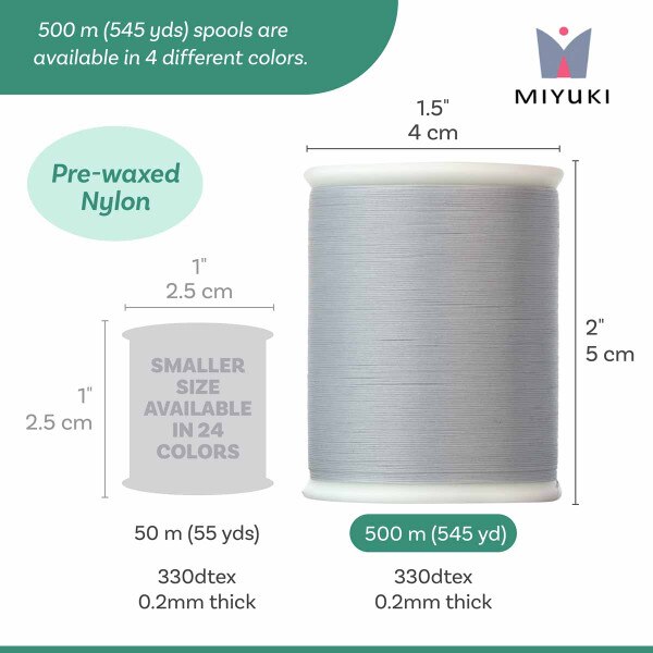 Elevate your beadwork to new heights with Miyuki Bead Thread. Since the 1930s, Miyuki has set the gold standard in glass seed bead manufacturing, ensuring precision and consistency in every project. Crafted in Japan, our pre-waxed nylon thread boasts a thickness of 0.2mm and comes in a generous 50-meter spool, providing ample material for your creative endeavors. Ideal for delica beads, stringing, weaving, and more, this thread adds a touch of elegance to your designs. Unleash your creativity with our vibrant rainbow of thread colors, meticulously curated to inspire your imagination. Choose from basic, bright, and primary hues to infuse personality and flair into your artistic projects. Miyuki Bead Thread offers unparalleled versatility and durability, ensuring your creations stand out with exquisite detail and lasting beauty. Fuel your imagination with endless possibilities. Whether you're a seasoned artisan or a beginner, our thread is perfect for seed bead projects, loom work, and off-loom bead weaving like peyote or brick stitch. Explore intricate techniques and designs with confidence, knowing that Miyuki Bead Thread provides the perfect foundation for your creations.