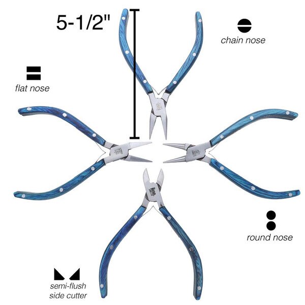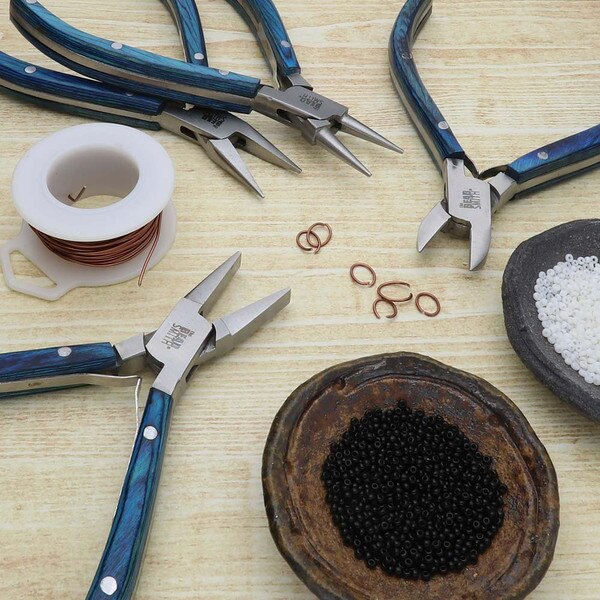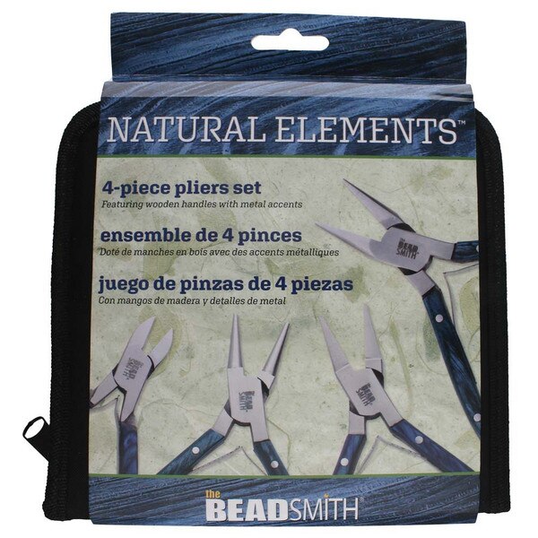 Designed to make jewelry repair, improvement, and creation easier, the Beadsmith 4-piece Natural Elements Pliers Set is an excellent addition to any jewelry making or jewelry repair supplies. Made from high-quality materials, these tools are durable, heavy duty, and built to last. All the pliers are made of polished steel jaws, and wooden handles. The sprint joint construction is great for smooth operation and helps with hand fatigue that is often associated with beading. The set includes a round nose plier, a chain nose plier, a flat nose plier and a side cutter. Included with the set is a zippered carrying pouch. The foam cutouts inside fit your tools snuggly, keeping your tools secured and organized. Whether you're a professional jewelry artist or a hobby crafter, this plier tool kit makes a great addition to your art and craft supplies. It is designed to assist in beading and intricate jewelry pieces — even chainmail and bailing. Because this set is so versatile, it makes a great gift for Christmas, a birthday, or any special occasion. Help your friends, family, and loved ones develop their creative and artistic talents with this complete kit. It makes it easy to create beautiful pieces of jewelry! No matter what kind of wire you're using, these tools are durable and built to last. Making DIY jewelry and fashion accessories has never been easier! You can bend, wrap, straighten, or loop wires in no time. Your hobby should be fun and simple. Don't settle for old tools that break easily — this set of pliers is heavy duty, convenient, and easy to use for crafting jewelry.