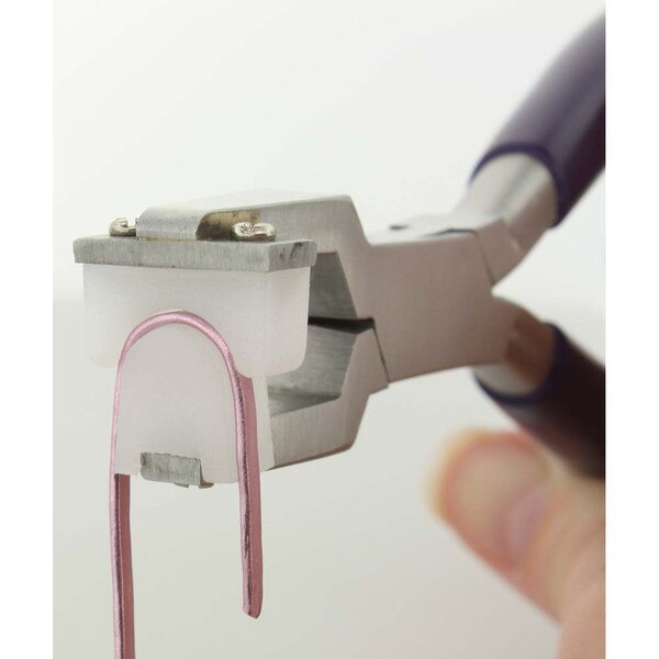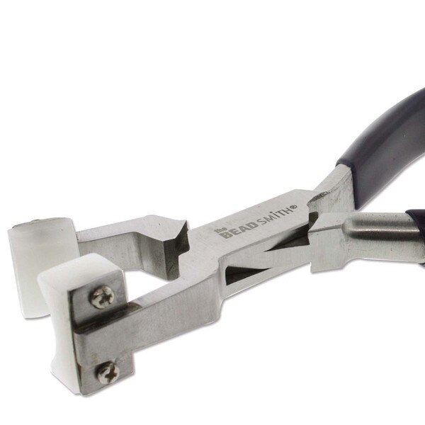 This double nylon jaw ring bending plier is brought to you be The Beadsmith. The tool is 5.5 inches long (140mm), constructed into a box joint design and the double concave jaws are made of quality nylon. The heads are screwed into a polished steel base, convenient for easy replacement. (Replacement heads sold separately.) The handles are made of a black PVC, allowing for a comfortable grip. These pliers do not have springs, which enhances your personal control over the pliers. The concave area of jaw measures 15mm wide x 3mm deep. They are ideal for forming soft metal wire or flat stock into rings, measuring 6.5 or larger. They are smaller and more comfortable than comparable tools from other manufacturers. These nylon jaw pliers are great for working wire without scratching the surface of the material. You can also use them to harden wire or jump rings made with softer metals like sterling silver, gold filled and craft wire. These are great for jewelry making and fine hobby work as well as DIY projects and other arts and crafts. Whether you are a beginner or making a living with your jewelry designs, we know you will find this tool absolutely essential.