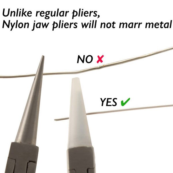 Designed to make jewelry repair, improvement, and creation easier, the Beadsmith nylon jaw pliers are an excellent addition to any jewelry making or jewelry repair kit. Made from high-quality polished steel and a boxjoint construction our tools are durable, heavy duty, and built to last. Because of their innovative design, these pliers enable you to straighten metal wire, sheet stock, or soft metals to create amazing jewelry pieces. With the nylon jaws, you won't have to worry about scratching or marring metal surfaces, and they can even be replaced over time. The pliers feature ergonomic comfort grips and double-leaf spring handles to improve your grip and help relieve hand fatigue.