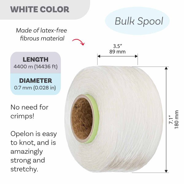 OPELON WHITE 4400M .7MM STRETCH CORD.1.1 KILO SPOOL