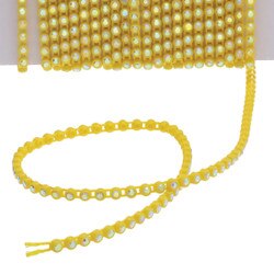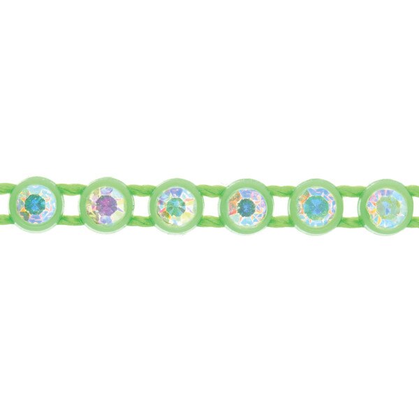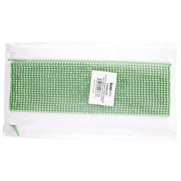 PLASTIC RHINESTONE BANDING GREEN WITH CRYSTAL AB SIZE SS6 - 10 YARD CARD