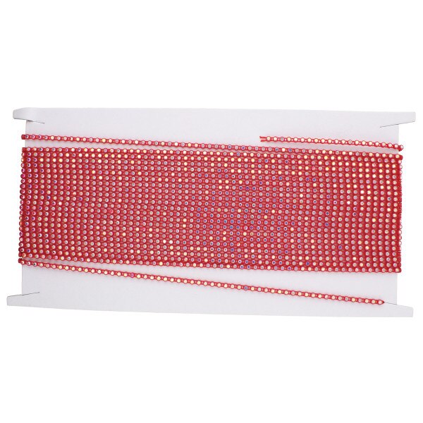 PLASTIC RHINESTONE BANDING RED WITH CRYSTAL AB SIZE SS6 - 10 YARD CARD
