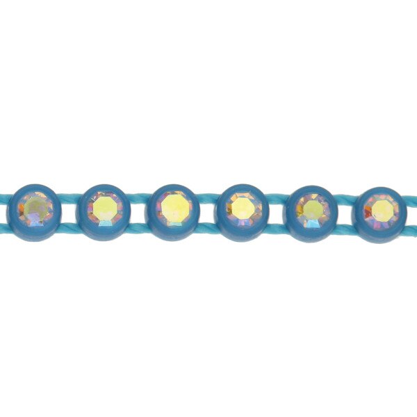 PLASTIC RHINESTONE BANDING BLUE WITH CRYSTAL AB SIZE SS6 - 10 YARD CARD