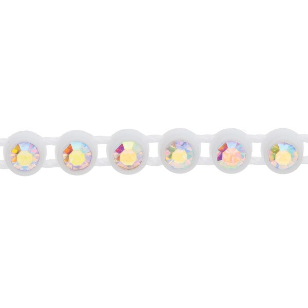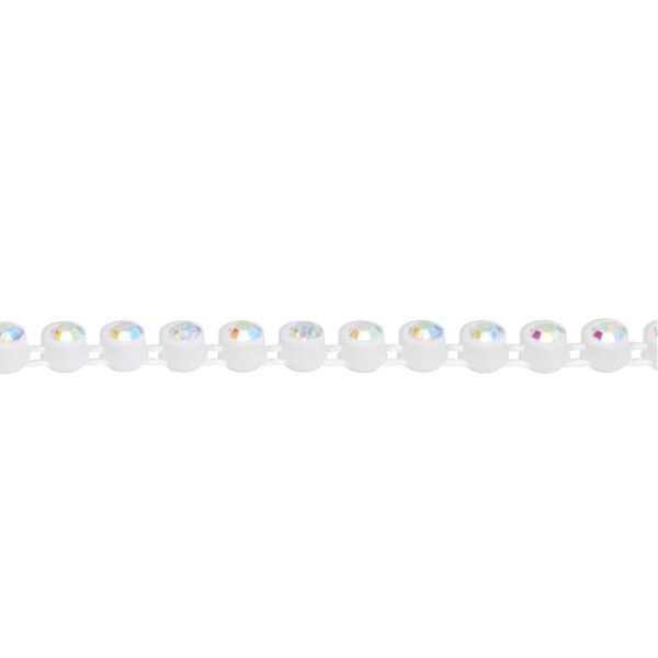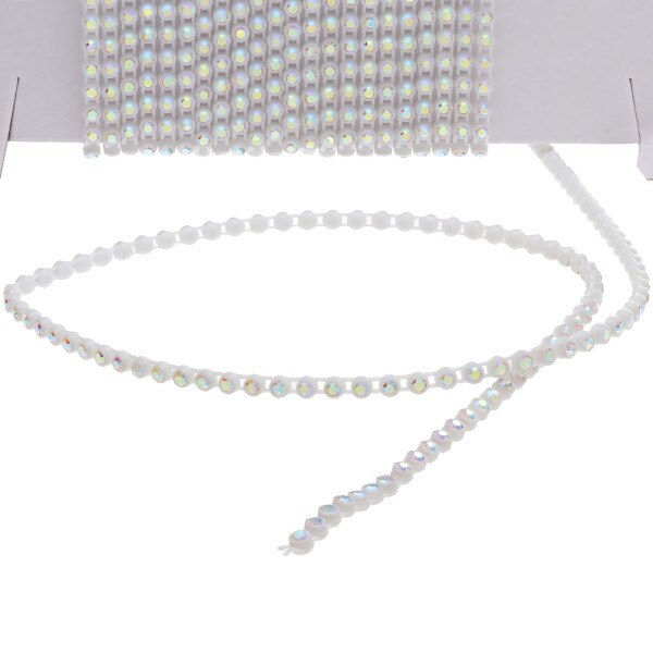 PLASTIC RHINESTONE BANDING WHITE WITH CRYSTAL AB SIZE SS6 - 10 YARD CARD