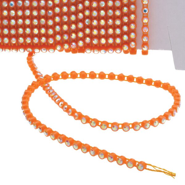 PLASTIC RHINESTONE BANDING ORANGE WITH CRYSTAL AB SIZE SS8 - 10 YARD CARD