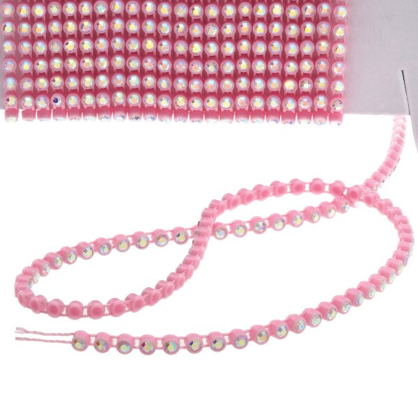 PLASTIC RHINESTONE BANDING PINK WITH CRYSTAL AB SIZE SS8 - 10 YARD CARD