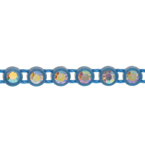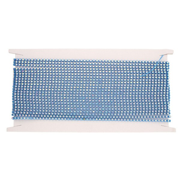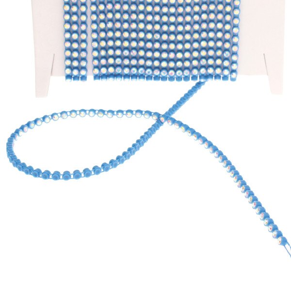 PLASTIC RHINESTONE BANDING BLUE WITH CRYSTAL AB SIZE SS8 - 10 YARD CARD