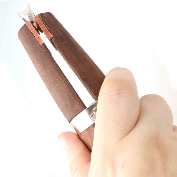 The Beadsmith’s Wooden Ring Clamp is the ultimate jewelry maker’s tool. Lightweight and compact, this clamp can easily be stored in your work bench, small studio table or packed for travel to craft shows and classes. Made of wood that has been sanded to a smooth finish, this 6-inch hand tool has a hinge in the middle and comes with a wooden wedge. The hinge works with a see-saw motion and the wedge works as a stopper to hold the ring in place at the other end. To use, clamp your ring or item between the tips and push the wedge into place at the other end. This will create tension and the tips will clamp the ring in place. Removing the wedge allows for the two halves to move freely again. It is a safe and secure way to keep your fingers out of the way when using sharp tools to create your piece. This is much safter than using pliers or other tools. This ring clamp is essential for your work bench or jewelry making kit. It can be used for hold pieces when drilling, as well as filing and sending rings and bands. You can clamp a piece of sheet metal to cut or drill holes. You may also want to invest in some of The Beadsmith’s Metal Elements line, which includes quality tools to create personalized jewelry. Hold your piece in the clamp and use our embossing or texturing hammers to form indented patterns on jewelry accessories or sheet metal blanks. This ring clamp is also great for repairing pieces. Use it to create custom made earrings, bracelets, necklaces, and rings. Pick up a new hobby, have fun making jewelry or create gifts for family and friends.
