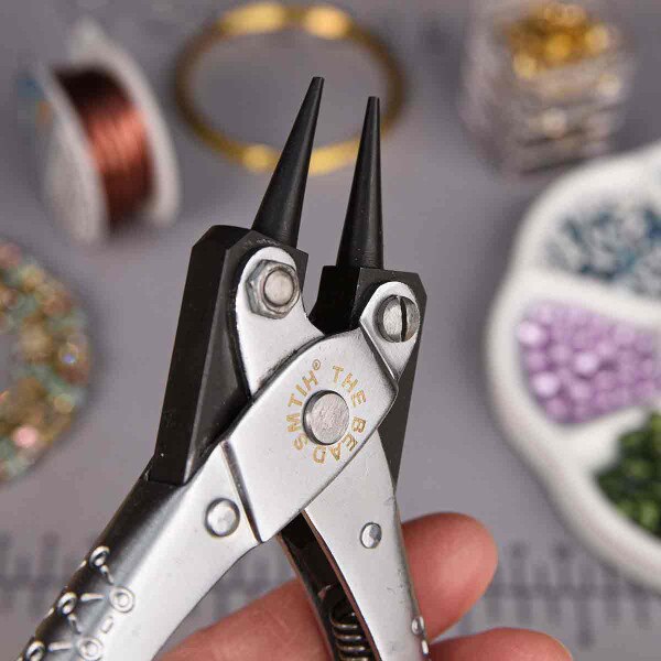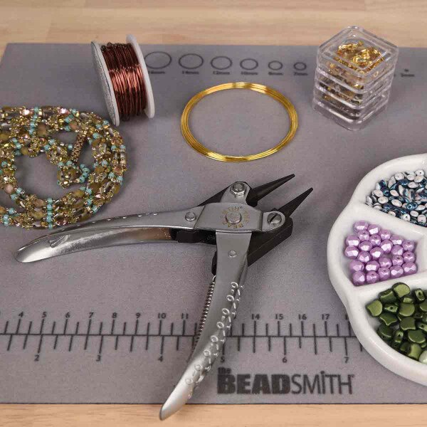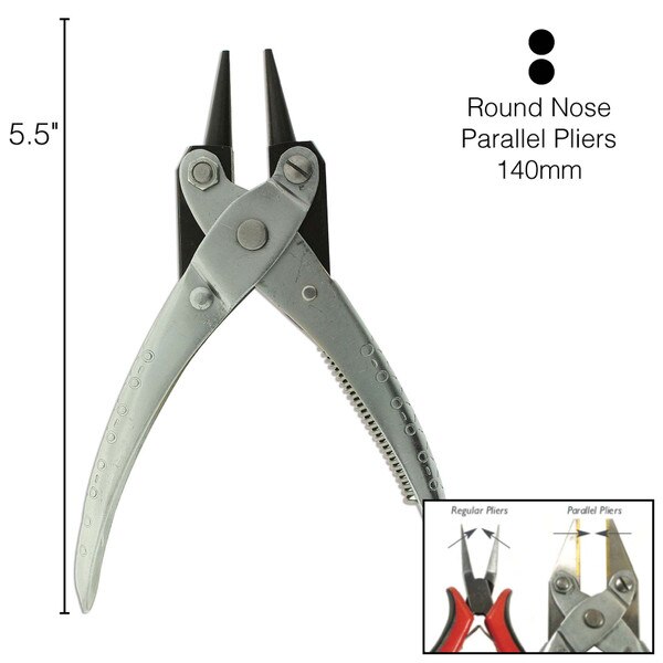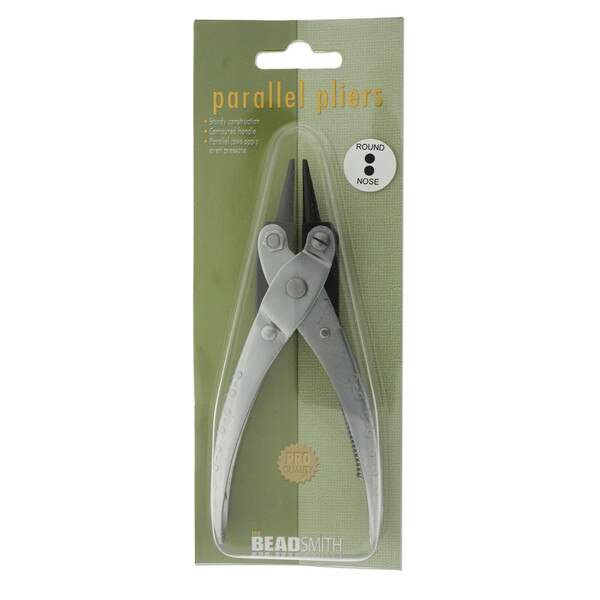 Designed to make jewelry repair, improvement, and creation easier, the Beadsmith Round Nose/ Nylon Flat Nose Parallel Pliers are an excellent addition to any jewelry making supplies or jewelry repair kit. Made from high-quality hardened polished steel, this tool is durable, heavy duty, and built for doing heavier work. Parallel pliers are used when uniform pressure is required. They feature a unique compound box joint construction that allows the jaws to stay parallel to each other while the spring loaded handle helps reduce hand fatigue so you can create and repair many jewelry creations Even under firm pressure, they provide a flat, consistent grip, unlike standard pliers that apply angled, uneven pressure that can cause items to slip out of the jaws. This hand tool has double round nose jaws, essential for creating consistent, well-shaped bends and loops. The surface on the inside of the jaws is completely smooth, not serrated. This is extremely important, to avoid marring and scratching your wire as you work with it. Use this plier to loop, coiI and shape your wire. These are great for jewelry making, as well as other arts and crafts projects. Whether you are a beginner or making a living with your jewelry designs, we know you will find this tool absolutely essential. This plier makes a great addition to your art and craft supplies. Because these pliers are so versatile, they make a great gift for Christmas, a birthday, or any special occasion. Making DIY jewelry and fashion accessories has never been easier!