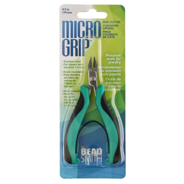 Introducing the perfect companion for precision crafting – our Micro Grip Side Cutter Tool! Crafted for the discerning artist, this tool is designed to be the right tool for the right job. The flat blades enable cutting right up to the edge of your work, reaching those tricky places with minimal filing and finishing required. The short tips provide impeccable precision for close-up applications. Experience professional quality with this 4.5-inch (114mm) side cutter tool. Meticulously created to the highest standards, it boasts high-quality hardened steel jaws and comfortable micro grip handles. Ideal for DIY jewelry projects, this tool effortlessly handles most bendable wires. Elevate your crafting experience with ultimate comfort. The Micro Grip line of pliers is crafted with your comfort in mind, featuring an ergonomic design that fits perfectly in the palm of your hand. The spring action design enhances efficiency, allowing you to accomplish more in less time while reducing hand fatigue. Enjoy comfortable use and unmatched precision in all your beading, jewelry, and DIY crafting projects. This versatile jeweler's tool is a must-have for both professional jewelry artists and hobby crafters. Its adaptability makes it an excellent gift for Christmas, birthdays, or any special occasion. Empower your friends, family, and loved ones to explore their creative and artistic talents with this exceptional jewelry making tool. Proudly presented by The Beadsmith, with 40 years of expertise in bringing you the finest quality beads, tools, and supplies. We understand that making jewelry should be a positive experience, and we're here to join you in your creative journey. Our experts are dedicated to ensuring your satisfaction. Contact us with any quality issues or concerns – let's craft something extraordinary together!