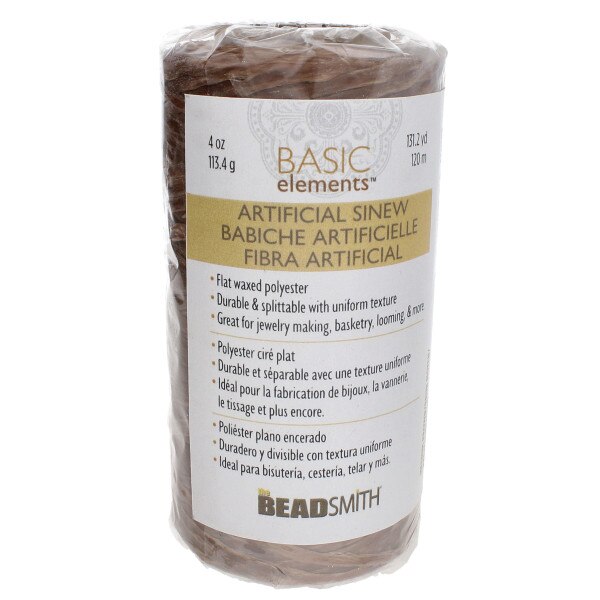 Introducing our durable and versatile 5-ply Artificial Sinew! The ultimate crafting essential for artisans and hobbyists alike! Made from high-quality continuous filament, waxed polyester cord, this sinew is built to withstand heavy-duty use, making it ideal for stringing heavy glass and ceramic beads with ease. The 5-ply construction offers exceptional strength while also providing the flexibility to split the cord into thinner strands, allowing endless creative possibilities for your projects. Whether you're creating intricate beadwork or crafting delicate jewelry pieces, our Artificial Sinew is the perfect companion for your artistic endeavors. Available in convenient sizes to suit your needs, you can choose from 1 oz., 4 oz. , and 8 oz. options. Each package includes ample sinew to bring your ideas to life and support your creative journey. Elevate your crafting toolkit with our premium Artificial Sinew and experience the strength, flexibility, and reliability that make every project a success. Order now and unlock a world of artistic possibilities!