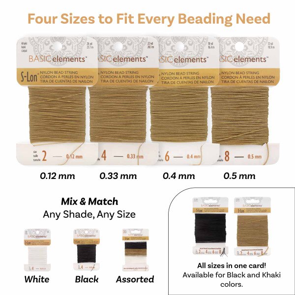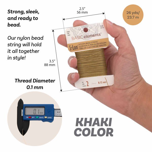 SLON BEAD STRING SIZE 2 KHAKI 26 YARD CARD