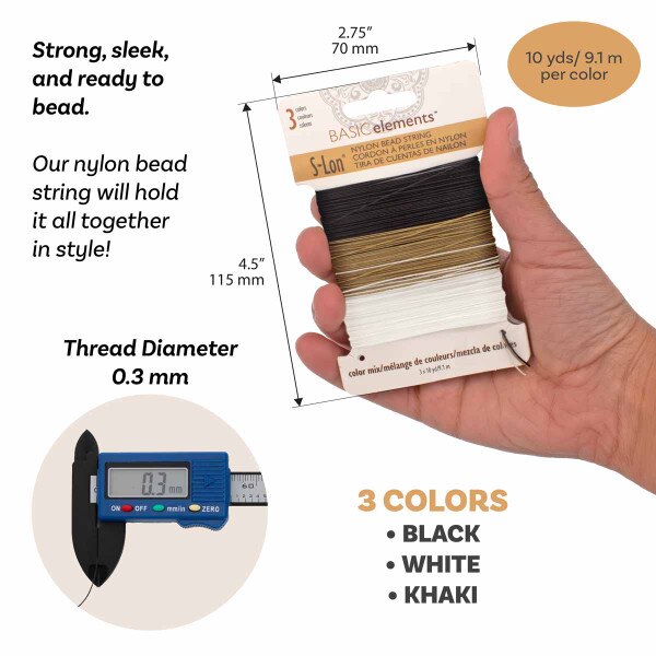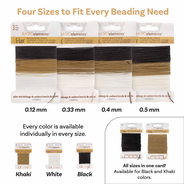 SLON BEAD STRING SIZE 4 ASST KH BK WH-10YD/EACH