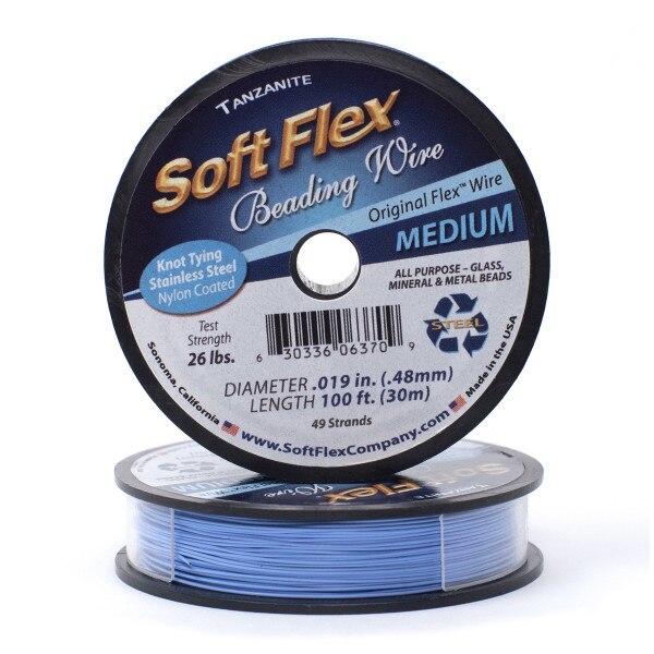 Soft Flex Wire is the designer's choice in bead stringing Wire. Soft Flex Wire is a lead-free beading Wire for designers that demand strength and durability. Soft Flex Wire is a superior beading Wire, created by beaders for beaders. Soft Flex Wire is constructed of either 21 or 49 micro woven stainless steel Wires. It is supple enough that it can be knotted and comes in a wide variety of colors. It is available in 3 diameters: .014, .019, and .024. We recommend Soft Flex Wire for designers that want their pieces to last and eliminate the frustration of restringing. Basic Usage: .010 Very Fine - Ideal for embellishing, weaving, crocheting and stringing very small beads. We suggest finishing 1x1mm crimps. .014 Fine - Ideal for soft materials, seed beads and fresh water pearls. We suggest finishing 2x2mm crimps. .019 Medium - Ideal all purpose Wire. Great glass, mineral, and metal beads. We suggest finishing 2x2mm crimps. .024 Heavy - Ideal for abrasive materials, large stones, lamp work and bracelets. We suggest finishing 2x3mm crimps.