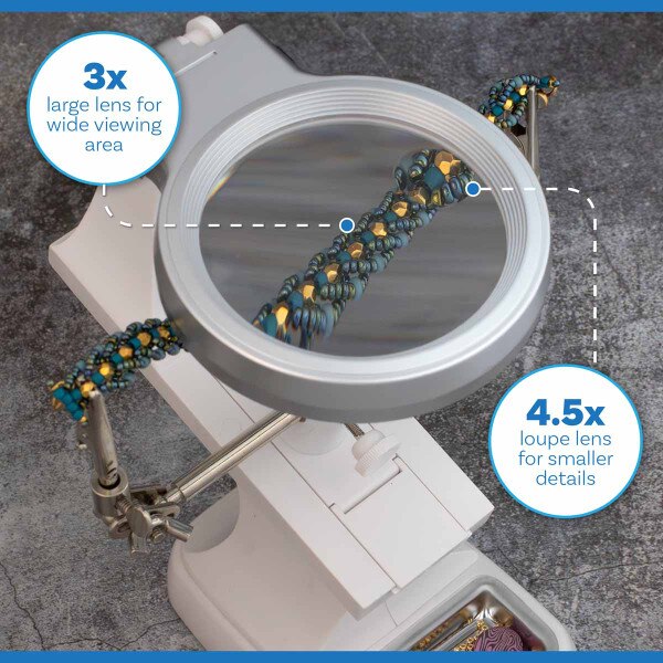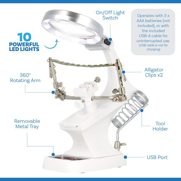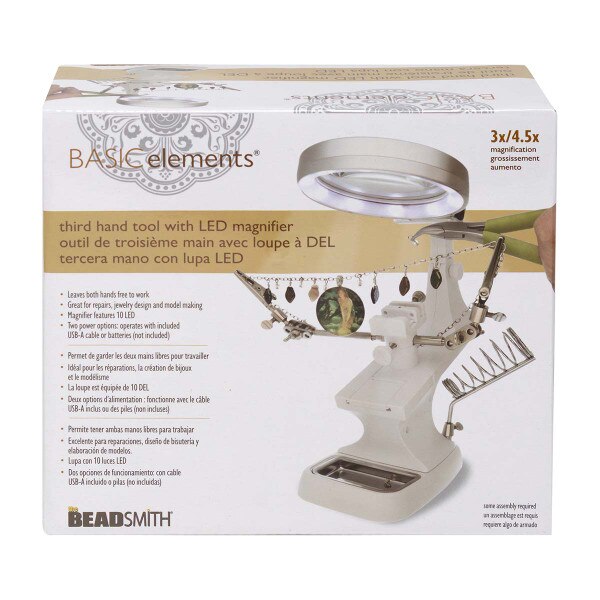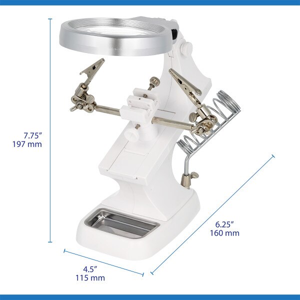 Perfect for jewelry makers and electronics enthusiasts, this versatile 3rd hand tool offers hands-free support for fine work like beadwork, wire wrapping, gemstone setting, and precision soldering. Its sturdy, flexible arms and powerful magnifying glass provide the stability and clarity needed for detailed craftsmanship.