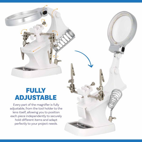 Third Hand with LED, Clamps, Magnifier and Tool Holder