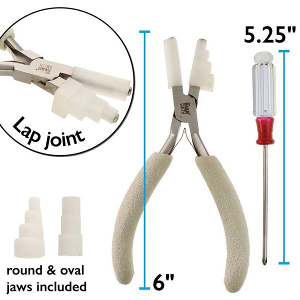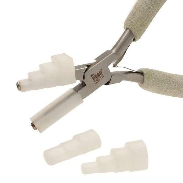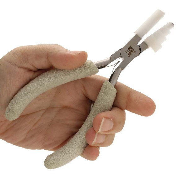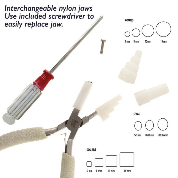 Designed to make jewelry repair, improvement, and creation easier, the Beadsmith Wire Elements nylon jaw pliers are an excellent addition to any jewelry making or jewelry repair kit. Made from high-quality polished steel and a lapjoint construction our tools are durable, heavy duty, and built to last. Because of their innovative design, these pliers enable you to shape and bend wire. The interchangeable jaws allow you to choose from 3 different shapes: circles, ovals or squares, while the stepped feature creates multiple sizes using the same jaw. Because they are made of nylon you won't have to worry about scratching or marring metal surfaces, and they can even be replaced over time. A screwdriver is included for quick and easy jaw exchanges. The plier features a comfort grip and double-leaf spring handles to improve your grip and help relieve hand fatigue. Whether you're a professional jewelry artist or a hobby crafter, this plier tool makes a great addition to your art and craft supplies. Because these pliers are so versatile, they make a great gift for Christmas, a birthday, or any special occasion. Help your friends, family, and loved ones develop their creative and artistic talents with this straightening tool. It makes it easy to create beautiful pieces of jewelry! No matter what kind of wire you're using, these pliers are durable and built to last. Making DIY jewelry and fashion accessories has never been easier! You can create straight wires in no time. Your hobby should be fun and simple. Don't settle for old tools that break easily — this set of pliers is heavy duty, convenient, and easy to use.