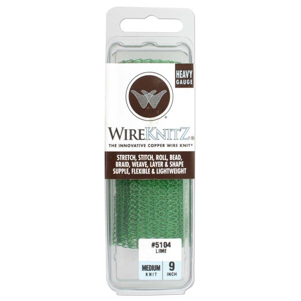 WireKnitz is an innovative copper wire tubular knit for artisans and crafters alike. This nickel-free, pre-knitted wire can be stretched, stitched, rolled, beaded, braided, weaved, layered, shaped, and even reshaped. Nothing goes to waste! It can even be gently hand washed. Enjoy the subtle flexibility, lightweight durability, and endless design possibilities. It is available in three knits, two widths, and two wire gauges. It is polyurethane enamel finished in a kaleidoscope of colors. Due to the manufacturing & spooling process, slight variations may occur in width and dye lot.