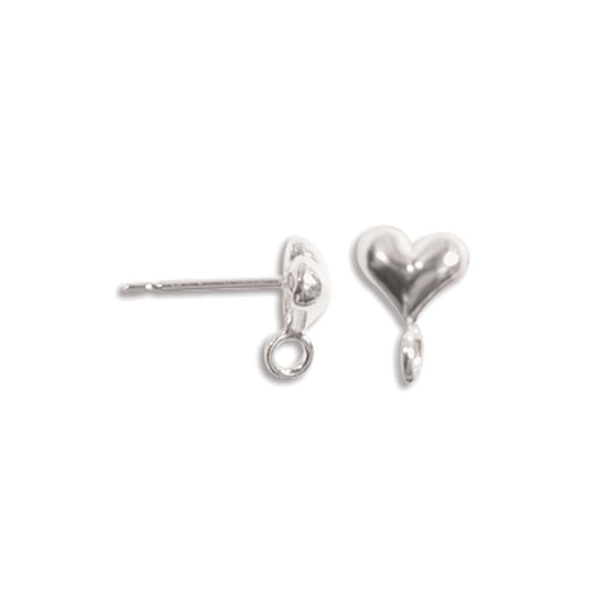 EARRING POST W/ HEART 6MM- SLVR PLT- 1GR